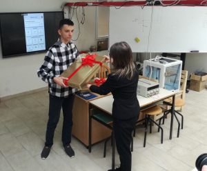 Данас су вриједне награде, одлични лаптопи, уручене Кенану и његовом ментору професору Младену Видовићу. Награде је уручила Сандра Станић, главни сарадник за друштвену одговорност компаније Мтел. Директор наше школе Владо Томић је изразио задовољство што су школу посјетили сарадници тако друштвено одговорне компаније као што је Мтел.