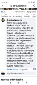 Посебно нас радују позитивни коментари наших гостију као што је коментар директорице ЈУ СШЦ Никола Тесла из Брода, Драгице Ивановић. Користимо прилику да јој се захвалимо на лијепим ријечима и конструктивној похвали. Надамо се развијању сарадње између наших школа .