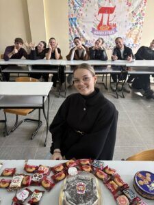 Час је протекао у креативној и ведрој атмосфери, а након часа су ученици се почастили слаткишима који су били аранжирани у облику ознаке за број π и прошетали кроз учионице и све нас изненадили колачићима запакованим у амбалажу на којиј је био знак броја π.